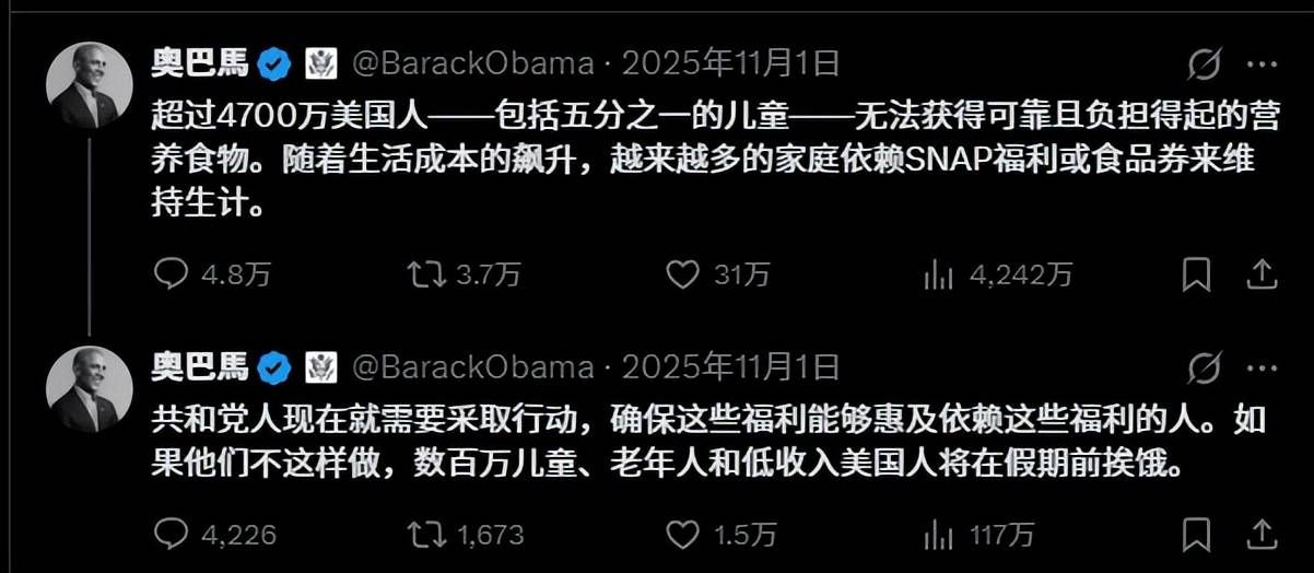 当然奥巴马现正在坐出来4700万美国人饿肚子的事,也不是由于发觉了,而是想要拿这件事进行党争,奥巴马发这个动静的时候恰逢特朗普停摆,党但愿将4700万美国人饿肚子的净水泼到党身上。而这也是美国体系体例最冷血的处所,所有取议员都晓得美国有4700万人饿肚子,此中还包罗800万的儿童,可是取议员关系的并不是若何处理老苍生的吃饭问题,而是第一时间拿来当党争的东西。而这也折射出美国社会另一个可骇的底层运转逻辑,美都城那么多饿殍遍野的环境了,底层为什么不奋起呢?做一个全平易近持枪的国度,都被到这种环境下,竟然还没有揭竿而起,别看美国人日常平凡、零元购什么的挺凶,可是正在面临实正的时候,却变得非常和顺,压根就不敢用枪,最多丢几个便宜的燃烧瓶。